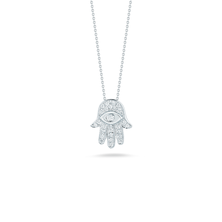 18K White Gold; Approx .18 ctw; 18" Chain; 14mm Length