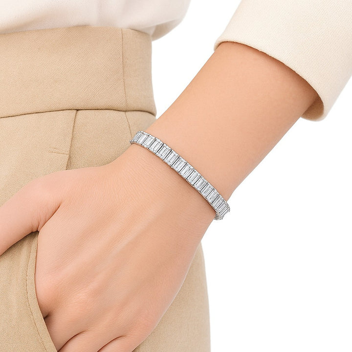 The ultimate statement of luxury. Crafted in 14K white gold featuring 26.36ctw lab-created diamonds. Length: 7.25".