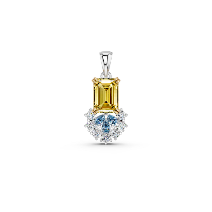 Refined elegance for the modern woman. Crafted in 14K Yellow and White Gold featuring 2.10 ctw yellow, white and blue Lab-Created Diamonds.
