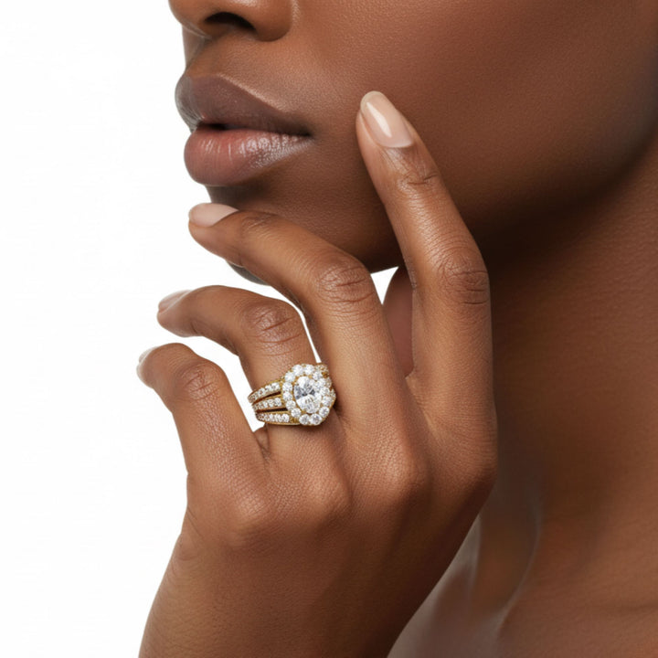Refined elegance for the modern woman. Crafted in 18K yellow gold featuring 4.00 ctw. lab-created diamonds. Size: 7