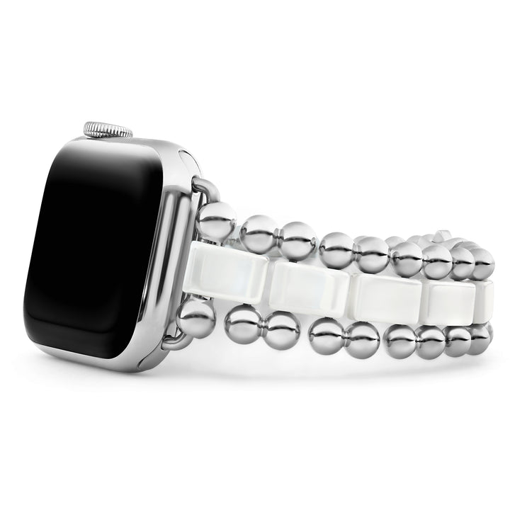 Created exclusively for your Apple Watch®, this watch bracelet is crafted from white ceramic and stainless steel links. This watch bracelet is designed for the Series 1, 2, 3, 4 or 5 Apple Watch® for the 38mm, 40mm, 42mm, or 44mm size. Finished with a secure double-button clasp detailing the LAGOS crest. Watch face sold separately.
