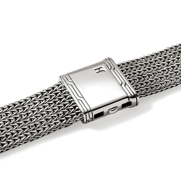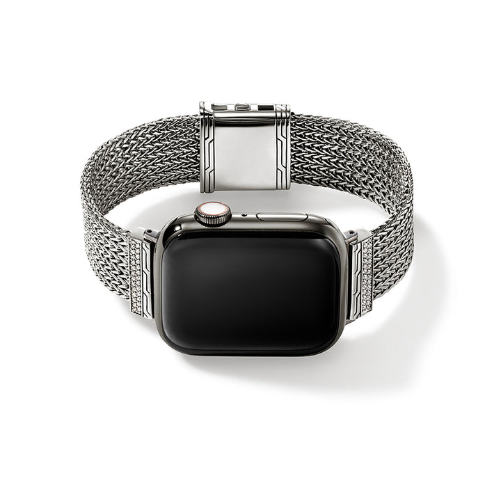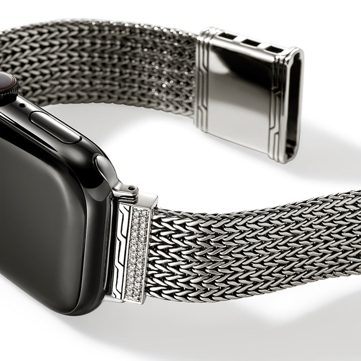 Adjustable tri-button pusher clasp has three fit settings to ensure optimal snugness on your wrist. Style No.: WBP986522DIXUMMetal: Sterling SilverStone: White DiamondCarat Weight: 0.44ctGauge: 18MMSetting: PaveClosure: Adjustable Pusher ClaspCompatibility: 40MM-45MM Apple...